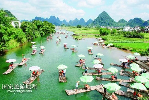 國(guó)家旅游地理 廣西桂林8月24日訊(通訊員 容科彪 攝影報(bào)道) 騎自行車觀賞田園風(fēng)光、坐竹筏漂游欣賞青山綠水、游生態(tài)農(nóng)業(yè)園享采摘樂(lè)趣……夏秋季是陽(yáng)朔的旅游旺季,該縣每天接待游客數(shù)萬(wàn)人次。今年1至7月,該縣接待游客超500萬(wàn)人次,同比增長(zhǎng)約10%。 /桂林日?qǐng)?bào)