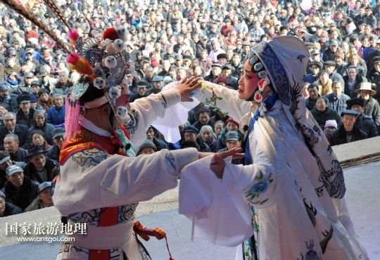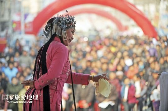 國家旅游地理 1月2日訊 2014年1月2日,在安徽省亳州市譙城區(qū)十河鎮(zhèn),演員在表演亳州非遺劇種“二夾弦”。當日,安徽省亳州市譙城區(qū)2014年“三下鄉(xiāng)”活動啟動,當?shù)蒯t(yī)療、文化、科技部門的“三下鄉(xiāng)”服務隊到基層開展文化、衛(wèi)生、科技、法律下鄉(xiāng)活動,為基層群眾送上新年的問候。 /新華社發(fā)(張延林 攝)