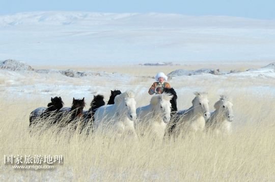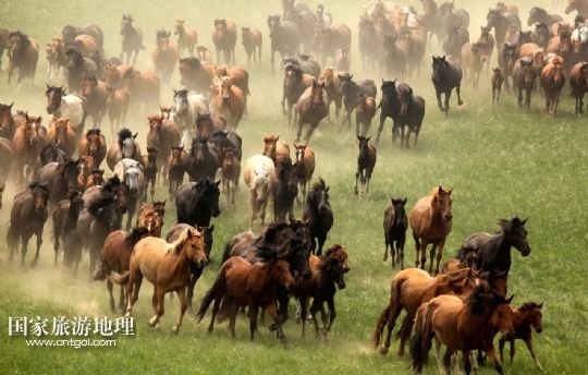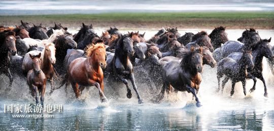 國(guó)家旅游地理 1月30日訊 一群蒙古馬在內(nèi)蒙古錫林郭勒盟阿巴嘎旗涉水奔馳(2013年7月20日攝)。風(fēng)從草原吹過(guò),留下多少傳說(shuō)。在內(nèi)蒙古草原,駿馬與人為伴,縱橫馳騁,一直和諧相處到今天。在漫長(zhǎng)的歷史長(zhǎng)河中,駿馬陪伴著人們走過(guò)了滄桑歲月,留下了許多可歌可泣的動(dòng)人傳說(shuō)。