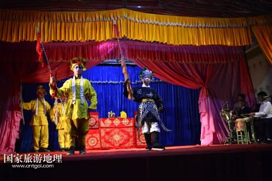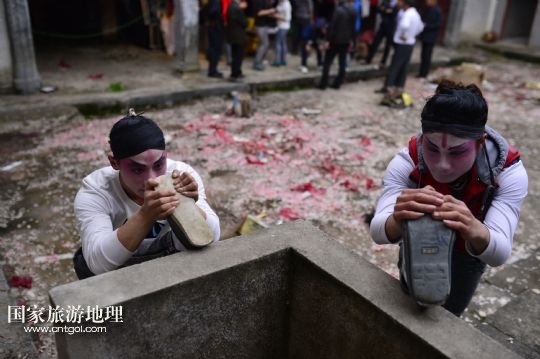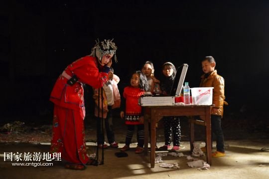 國(guó)家旅游地理 江西九江4月2日訊 在溪口鎮(zhèn)小溪村,三元班在演出寧河戲《三請(qǐng)樊梨花》(3月26日攝)。寧河戲是江西地方大型古老劇種之一,發(fā)源于江西修水縣,流行于贛北及湘、鄂、贛交界一帶。在寧河戲鼎盛的清乾隆年間,曾出現(xiàn)過(guò)“寧州十八班”,從業(yè)人員達(dá)到六七百人。然而隨著時(shí)代的變遷,寧河戲逐步?jīng)]落,最大的危機(jī)是逐漸空心化的村莊和村莊里越來(lái)越少的老戲迷。
