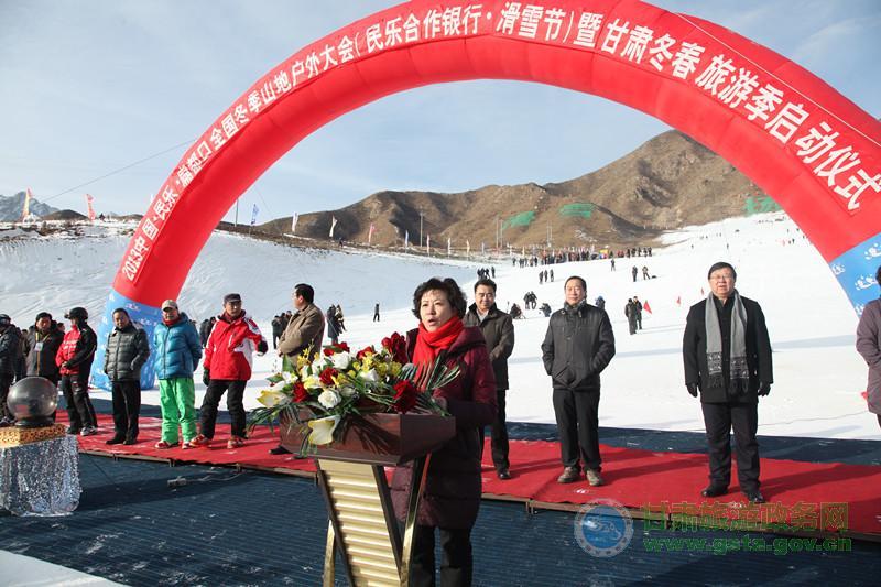 何偉局長用“祁連歡歌迎盛會(huì),冰雪旅游聚英豪”來稱贊本次活動(dòng)。她在致辭中指出,在張掖扁都口隆重舉行“中國·民樂扁都口全國冬季山地戶外大會(huì)暨甘肅省冬春旅游季活動(dòng)”啟動(dòng)儀式,這是我省體育、旅游兩個(gè)產(chǎn)業(yè)融合發(fā)展的重要舉措,也是我省淡季旅游市場(chǎng)啟動(dòng)的重要標(biāo)志。冰雪旅游是品位的追求,戶外運(yùn)動(dòng)是勇者的選擇。甘肅旅游資源十分豐富,冬季旅游資源獨(dú)具特色。為了給激情飛揚(yáng)的旅游愛好者獻(xiàn)上豐盛的冬季旅游盛宴,全省各地都在積極謀動(dòng)。特別是張掖市舉全市之力,精心策劃,全力推動(dòng),不僅在大景區(qū)建設(shè)等整體旅游工作上走在全省前列,而且在淡季旅游開發(fā)上搞得紅紅火火,做出了示范。在張掖啟動(dòng)全省“冬春旅游季”活動(dòng),就是為了借張掖冬季旅游的火熱勢(shì)頭,帶動(dòng)全省淡季旅游持續(xù)升溫。希望全省旅游系統(tǒng)以本次活動(dòng)為契機(jī),整合資源,相互借勢(shì),形成合力,共同做熱、做大甘肅冬季旅游市場(chǎng),使甘肅豐富多彩的冬春旅游資源轉(zhuǎn)化為旅游發(fā)展新的亮點(diǎn)、經(jīng)濟(jì)增長的新優(yōu)勢(shì)。