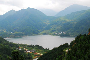 泛舟湖上,但見山環(huán)水繞,峰回路轉(zhuǎn)。放眼望去,其山巒遠近高低,有翠屏而立者,有碧螺而旋者,有柱石擎天者,有丘陵迤儷者。如遇晴日,藍天白云,碧樹紅花,映入湖面,靜則含蓄,動則朦朧。間以飛泉滴流,鳥鳴魚躍,詩情畫意,油然而生。湖壩之下,又是另一番景色。亂石突兀,三里成堆,溪流汩汩,清泉淙淙,游人入其間,采一束野花,掬一捧河水,或臥或息,或濯或浴,仰視云海變幻,聚散離合,無不心曠神怡。